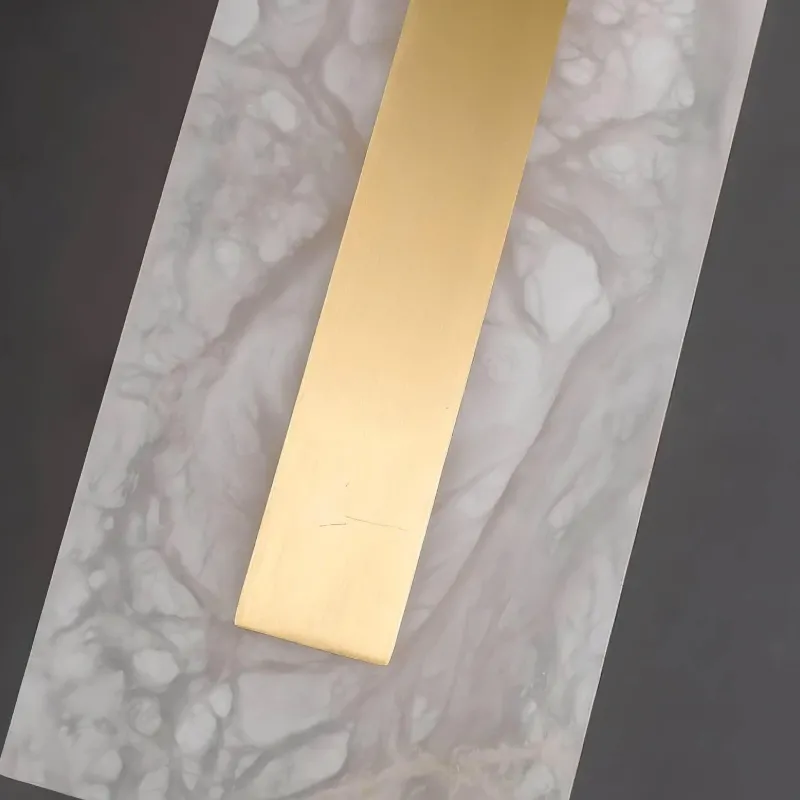 Entdecken Sie eine faszinierende Wandleuchte, die moderne Eleganz mit zeitloser Eleganz harmonisch verbindet. Mit ihrem luxuriösen Marmor-Finish verleiht diese exquisite Leuchte jedem Ambiente einen Hauch von Opulenz. Ihr klares, stromlinienförmiges Design wertet modernes Dekor auf und sorgt gleichzeitig für eine sanfte Beleuchtung, die eine warme und einladende Atmosphäre schafft.