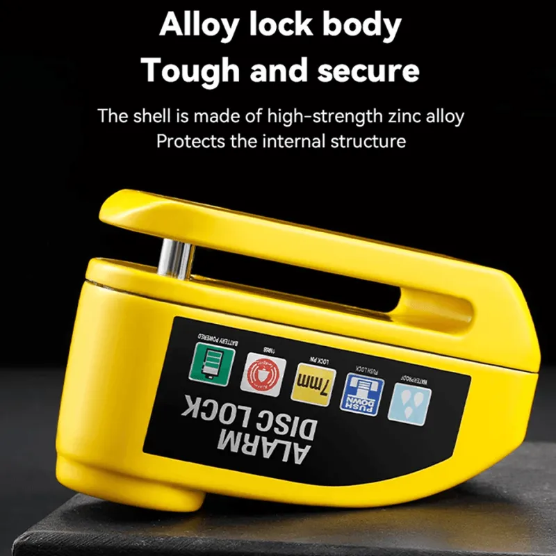 Dieses hochsichere Aluminium-Scheibenbremsenschloss mit Diebstahlalarm sorgt für ein sicheres Gefühl, wenn Sie Ihr Fahrrad unbeaufsichtigt lassen. Es besteht aus einer robusten Zinklegierung und ist zudem leicht – ideal für Radfahrer unterwegs.
