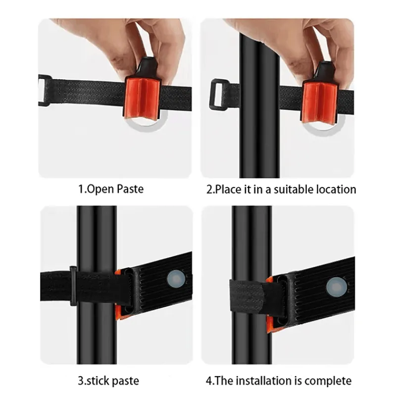 Dieses Fahrradrücklicht verfügt über einen Akku mit hoher Kapazität und ein praktisches USB-Ladesystem, das eine langanhaltende Beleuchtung für längere Fahrten ermöglicht. Das vielseitige Gurtdesign ermöglicht die einfache Montage an jeder beliebigen Stelle Ihres Fahrrads und erfüllt so die unterschiedlichen Beleuchtungsbedürfnisse für verschiedene Fahrsituationen. Mit vier hellen Leuchtmodi passt sich dieses praktische Licht nahtlos an Nachtfahrten an und sorgt dafür, dass Sie gut gesehen und sicher sind.