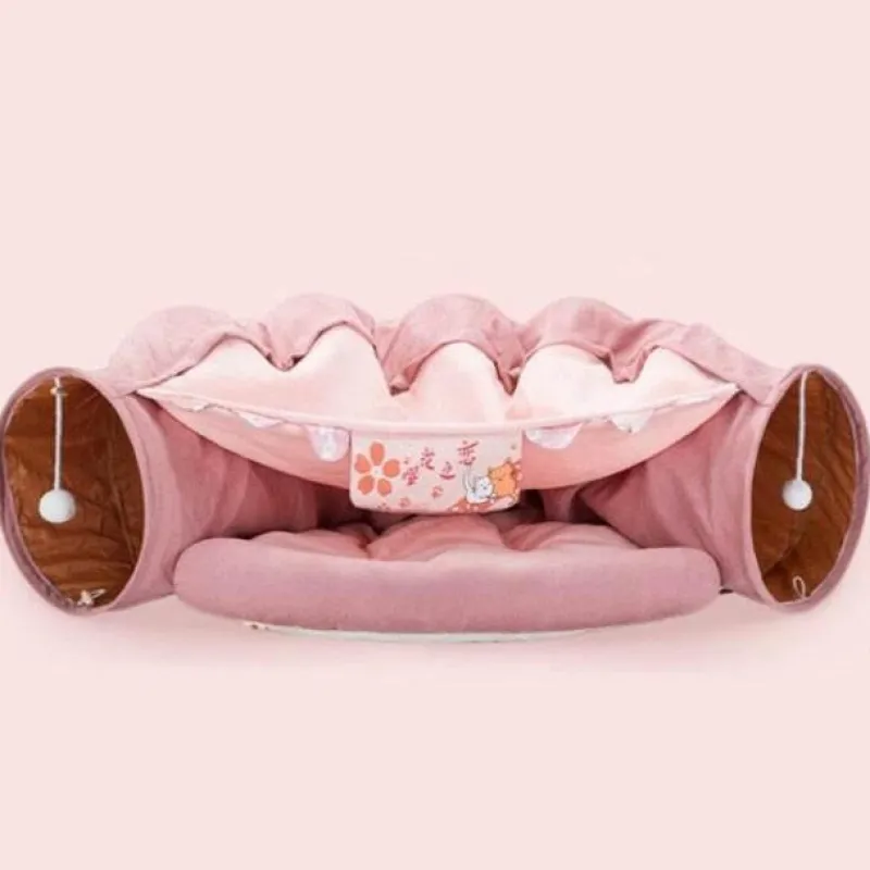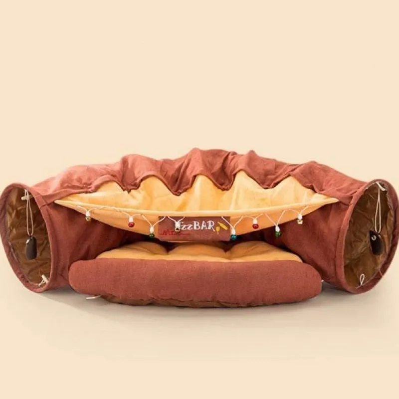 Dieses Bett mit seiner verspielten Silhouette, die ein Schlafnest und einen Tunnel kombiniert, bereichert die Spiel- und Erkundungszeit Ihrer Katze und fördert ihre natürliche Neugier und ihren Spielgeist.