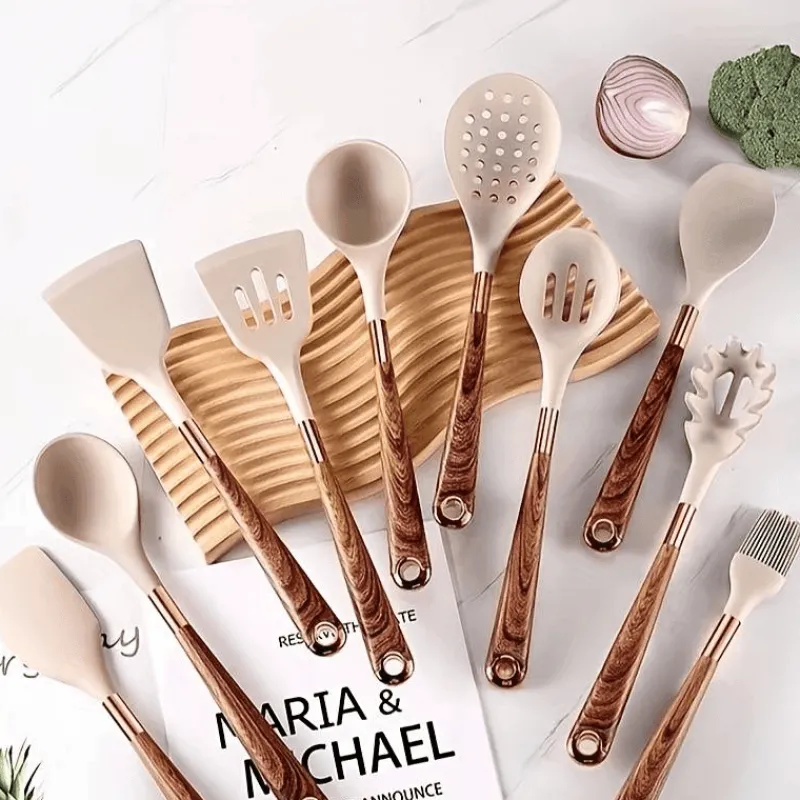 Erleben Sie müheloses Kochen mit unserem Silikon-Küchenhelfer-Set – für ein nahtloses, anhaftendes Erlebnis bei Ihren kulinarischen Abenteuern. Diese Utensilien aus hitzebeständigem Silikon sorgen dafür, dass Sie kochen können, ohne Angst vor Schmelzen oder Anhaften zu haben. Sie sind die ideale Wahl für jede Küche.