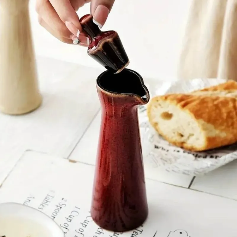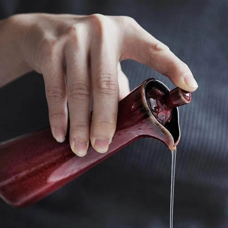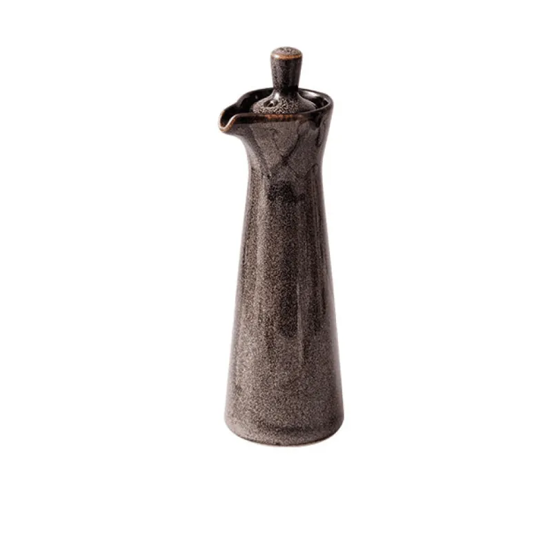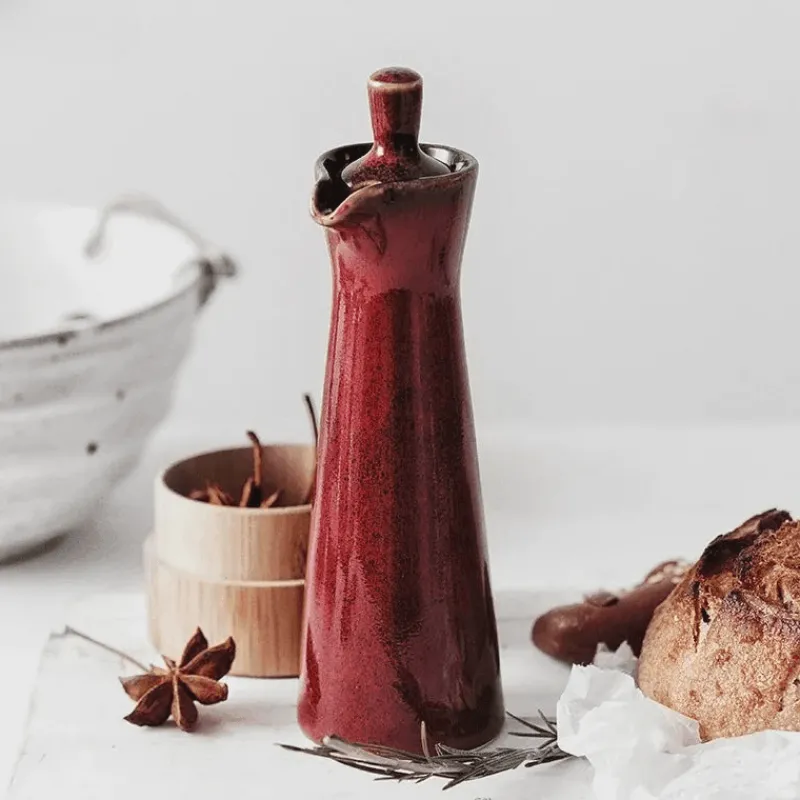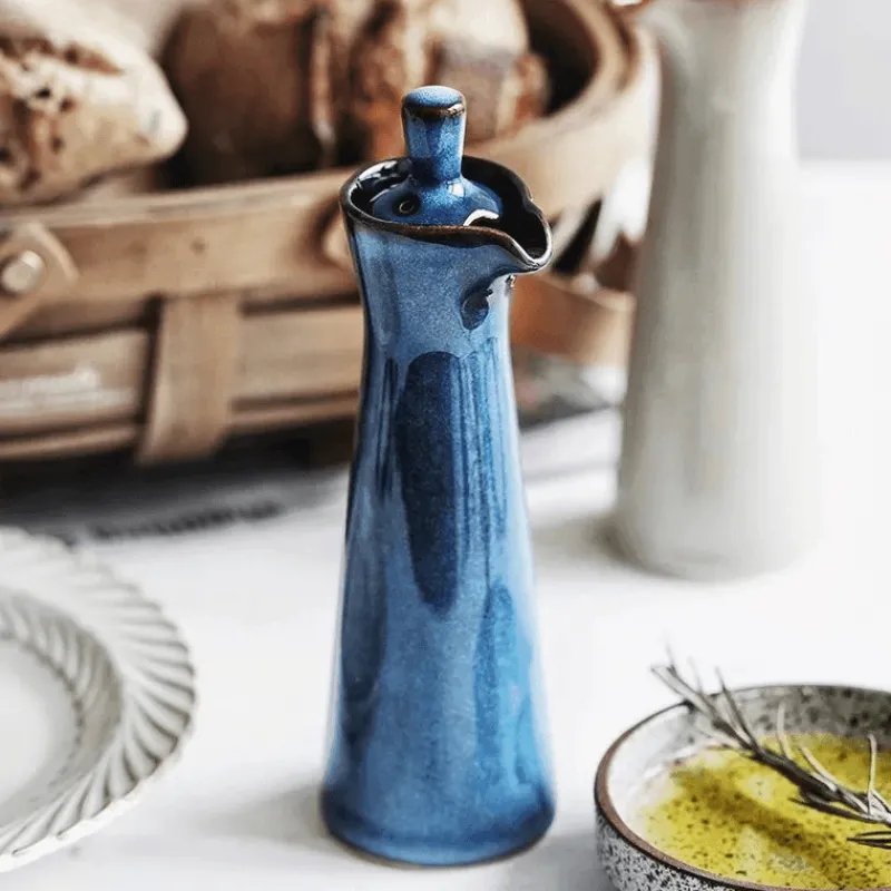 Veredeln Sie Ihr kulinarisches Erlebnis mit diesem handgefertigten Seifenspender aus Keramik – ideal zum Servieren von Sojasauce oder zum Beträufeln hochwertiger Öle. Mit seiner hohen, schlanken Silhouette besticht dieser Spender durch sein unverwechselbares Design mit einer eleganten, reaktiven Glasur und einem filigranen Muster aus winzigen, einzigartigen Flecken, die ihm seinen rustikalen Charme verleihen. Der glatte Ausguss ermöglicht präzises Ausgießen und sorgt für stilvolles Servieren Ihrer Gewürze. Ein passender Korkverschluss verleiht dem Stück Wärme und Charakter. Mit einem Fassungsvermögen von 100 ml verbindet dieses vielseitige Accessoire Funktionalität mit Ästhetik und ist somit eine wertvolle Ergänzung für jedes Zuhause.