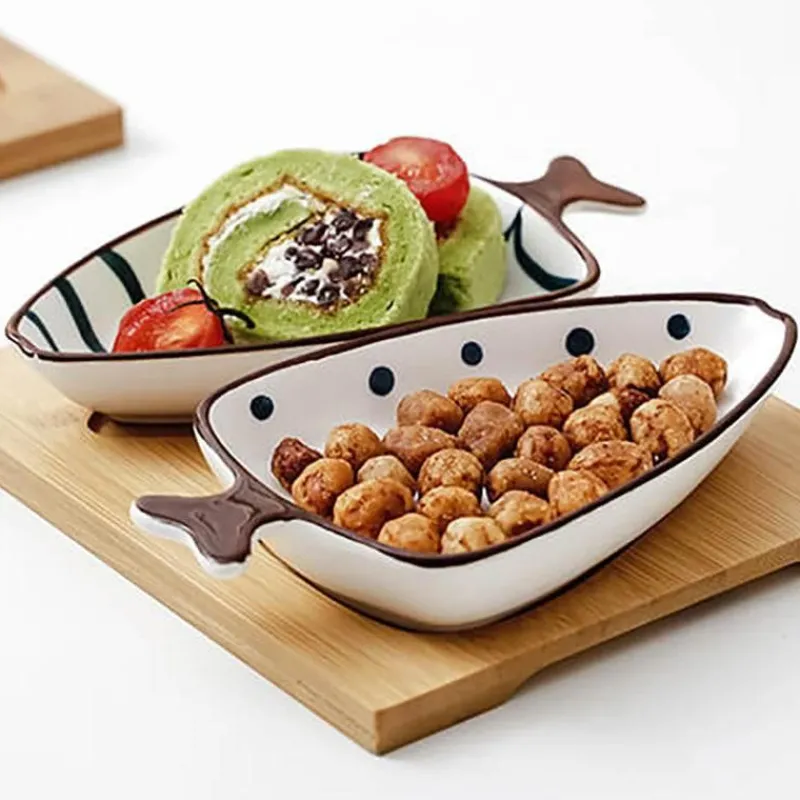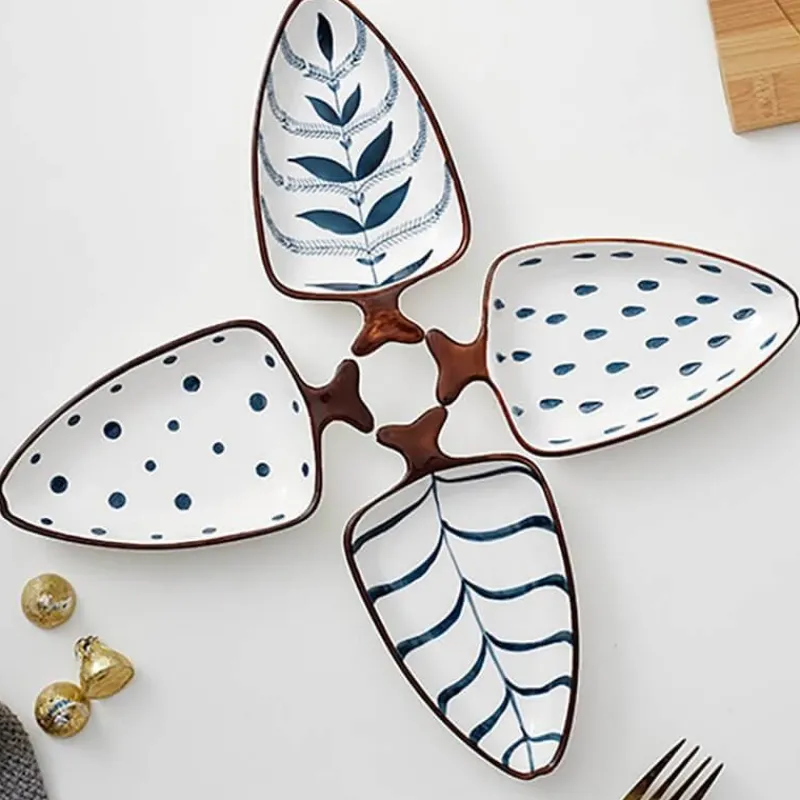 Veredeln Sie Ihr kulinarisches Erlebnis mit unseren wunderschön gestalteten Keramik-Snacktellern, inspiriert von der eleganten Form von Fischschwanzblättern. Dieses stilvolle Servierset umfasst vier verschiedene Teller, jeder mit einem bezaubernden Muster verziert, das Ihrem Tisch einen Hauch von naturinspirierter Eleganz verleiht. Diese Teller eignen sich perfekt zum Präsentieren verschiedener Speisen, wie z. B. kleiner Häppchen, Vorspeisen oder Desserts, und dienen bei Nichtgebrauch auch als auffällige Dekoration.