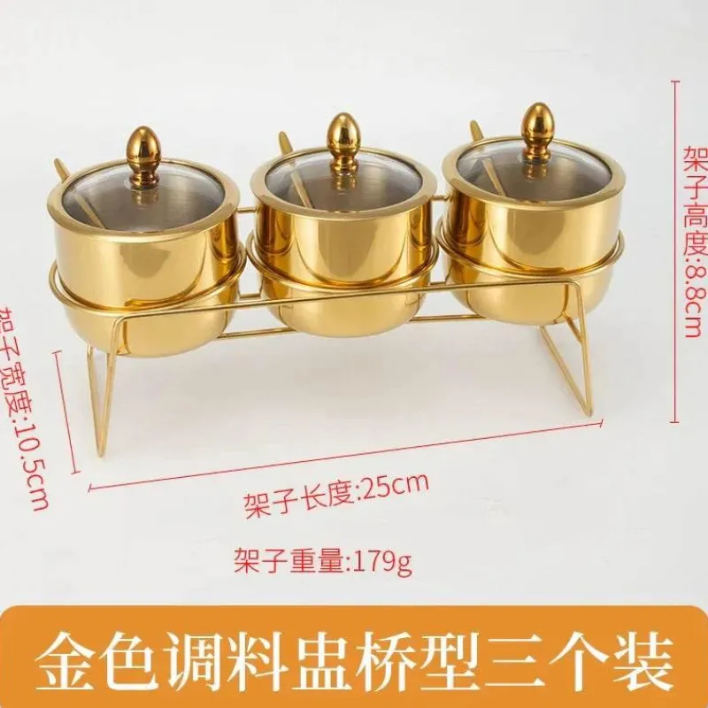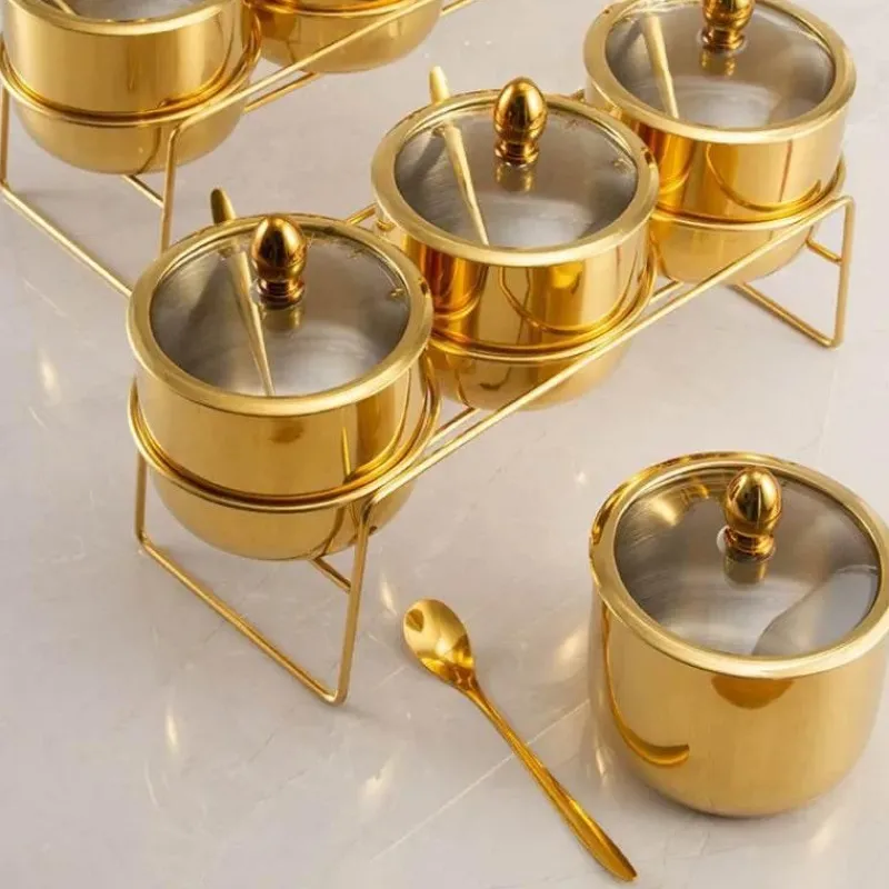 Jedes Glas fasst großzügige 270 ml und bietet somit ausreichend Platz für Ihre wichtigsten Kochzutaten. Das edle Goldfinish verleiht Ihrer Kücheneinrichtung eine edle Note, wertet sie optisch auf und passt zu vielen Stilen.