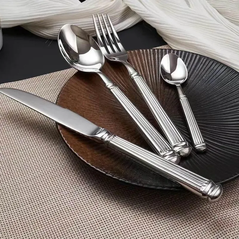 Diese edle Besteckkollektion besticht durch ihr markantes römisches Säulendesign und verleiht jedem Tisch ein künstlerisches Element. Die hochglanzpolierte Oberfläche fängt das Licht ein und reflektiert es, sodass sie sich für viele Anlässe eignet – ob Familienessen, festliche Zusammenkünfte, Hochzeiten oder besondere Anlässe.