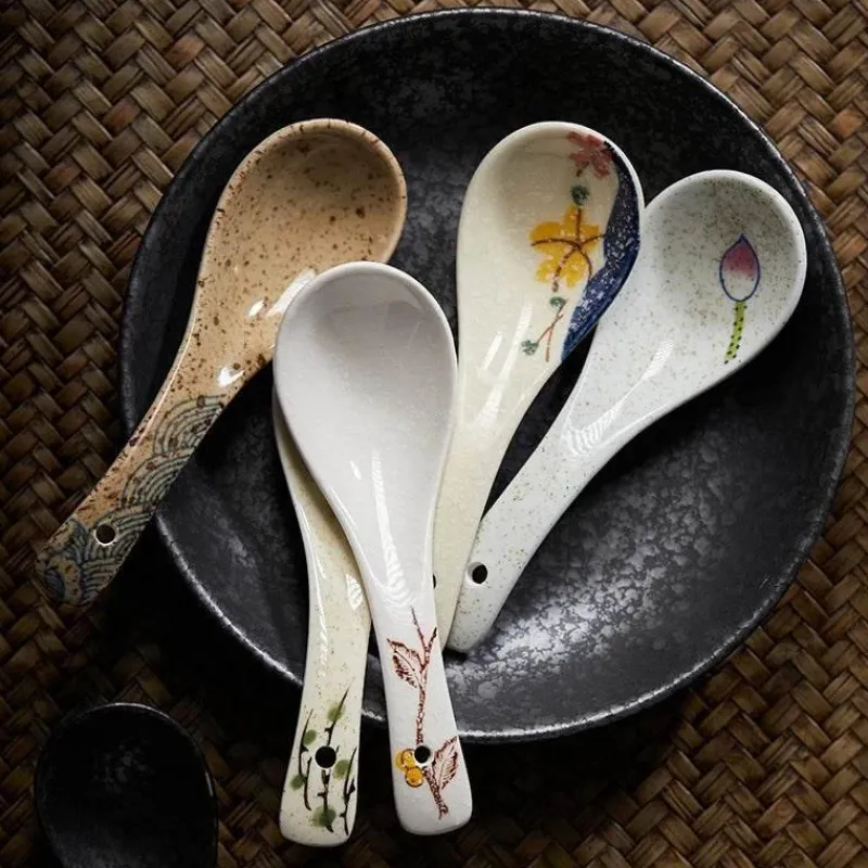 Erleben Sie die Eleganz unseres Keramik-Suppenlöffel-Sets mit nostalgischem Retro-Flair, das sowohl zu Ramen- als auch zu Reisgerichten passt. Ob Sie zu Hause eine Feier veranstalten oder Kunden im Restaurant bedienen – diese hochwertigen Keramiklöffel bereichern Ihr kulinarisches Erlebnis mit ihrem stilvollen Design.