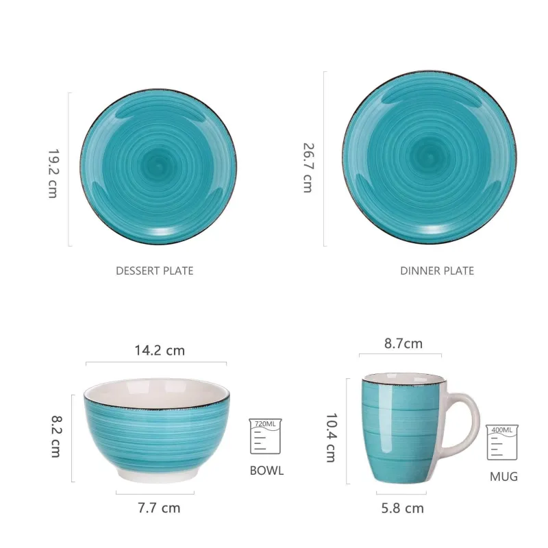 Jedes Stück ist sorgfältig pigmentiert, um leuchtende Farben zu gewährleisten, die ihre Brillanz über lange Zeit behalten. Die robuste Keramikkonstruktion garantiert Langlebigkeit und bietet gleichzeitig ein angenehmes Tastgefühl, das jedes Essen zu etwas Besonderem macht. Dieses Geschirr entspricht den CE/EU-Zertifizierungsstandards und garantiert Ihnen Qualität und Sicherheit für den täglichen Gebrauch.