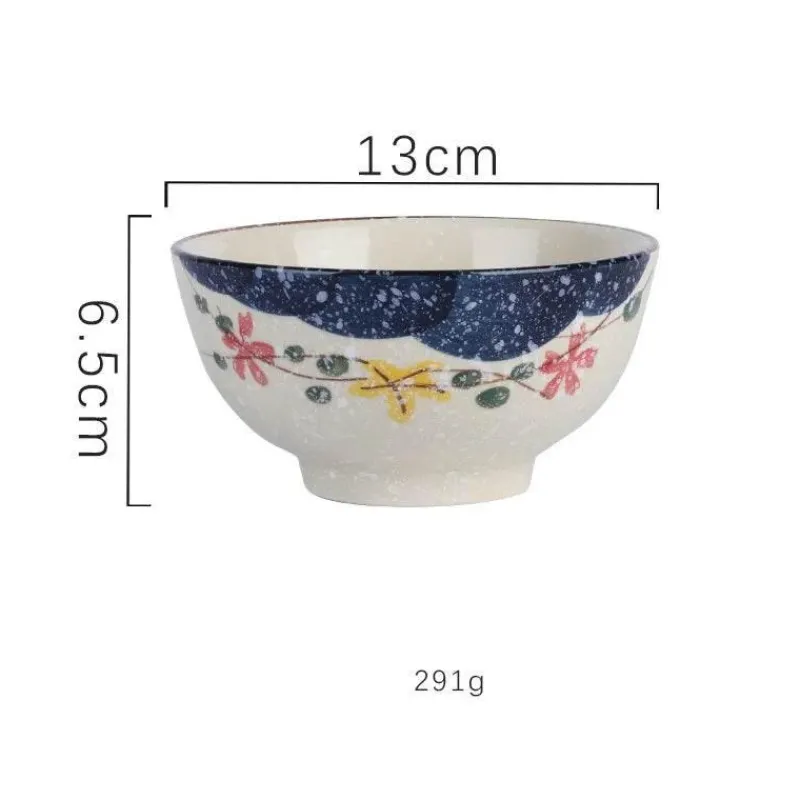 Erleben Sie den Charme unserer kleinen Keramikschale, die zum Servieren von Reis, Suppen und Nudeln sowohl zu Hause als auch im Hotel geeignet ist. Diese fein gearbeitete Schale mit handgemaltem Blumenmuster verleiht Ihrem Tisch einen Hauch von Eleganz.