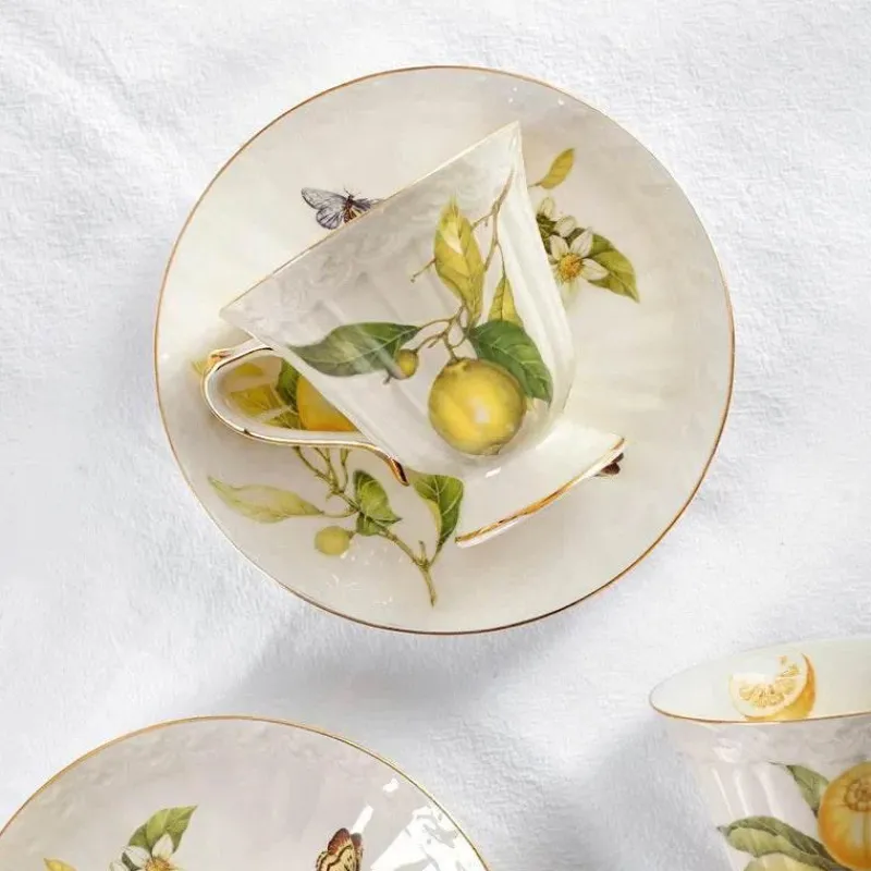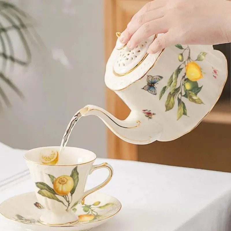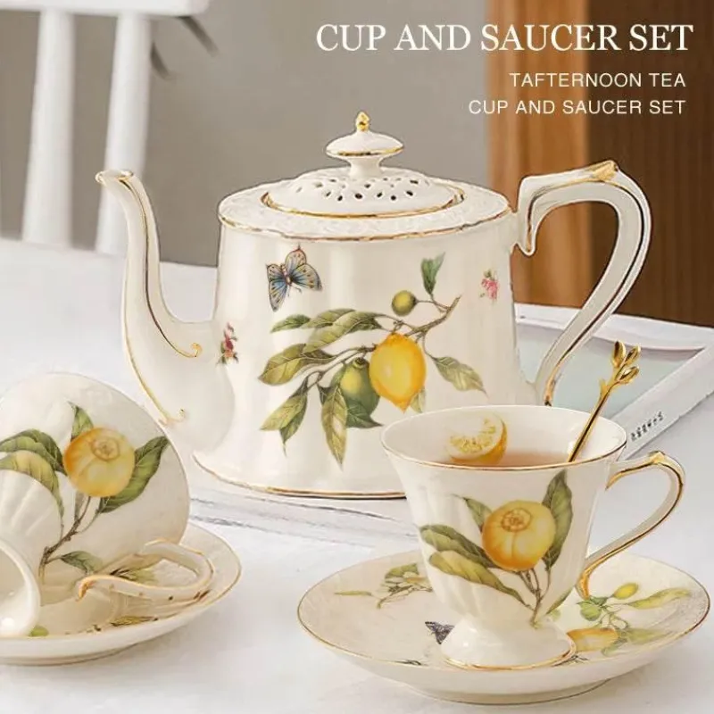 Entdecken Sie den einladenden Charme dieses Tee- und Kaffeesets mit Goldrand, das Ihren Heißgetränkegenuss perfektioniert. Die handbemalte Kollektion umfasst eine atemberaubende Zitronenteekanne, eine Kaffeetasse, Keramikteller und weiteres Trinkgeschirr aus hochwertiger, umweltfreundlicher Keramik. Die luxuriöse Porzellanoberfläche verleiht dem Set einen Hauch von Eleganz und macht es zu einer schönen Ergänzung für jeden Esstisch oder jedes gemütliche Ambiente.