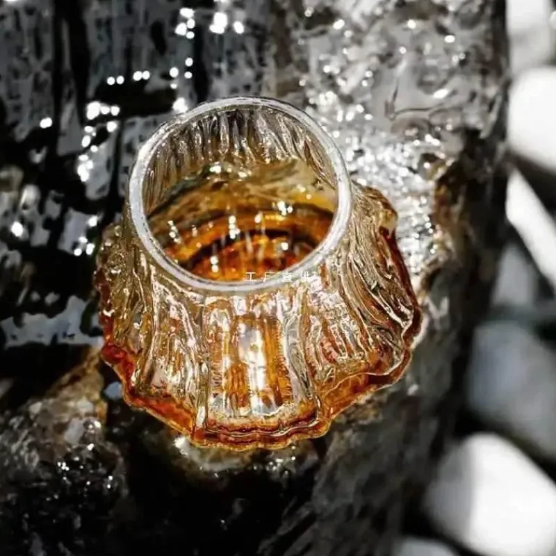 Erleben Sie die Verbindung von Eleganz und Funktionalität mit diesem gerippten Trinkglas. Sein markantes Design erinnert an die skulpturale Silhouette eines Vulkans. Die strukturierten Rillen fangen das Licht ein und brechen es, wodurch die natürlichen Farbtöne Ihrer Lieblingsgetränke optimal zur Geltung kommen. Der stabile, beschwerte Boden sorgt für Stabilität und eignet sich sowohl für zwanglose Zusammenkünfte als auch für elegantere Anlässe.