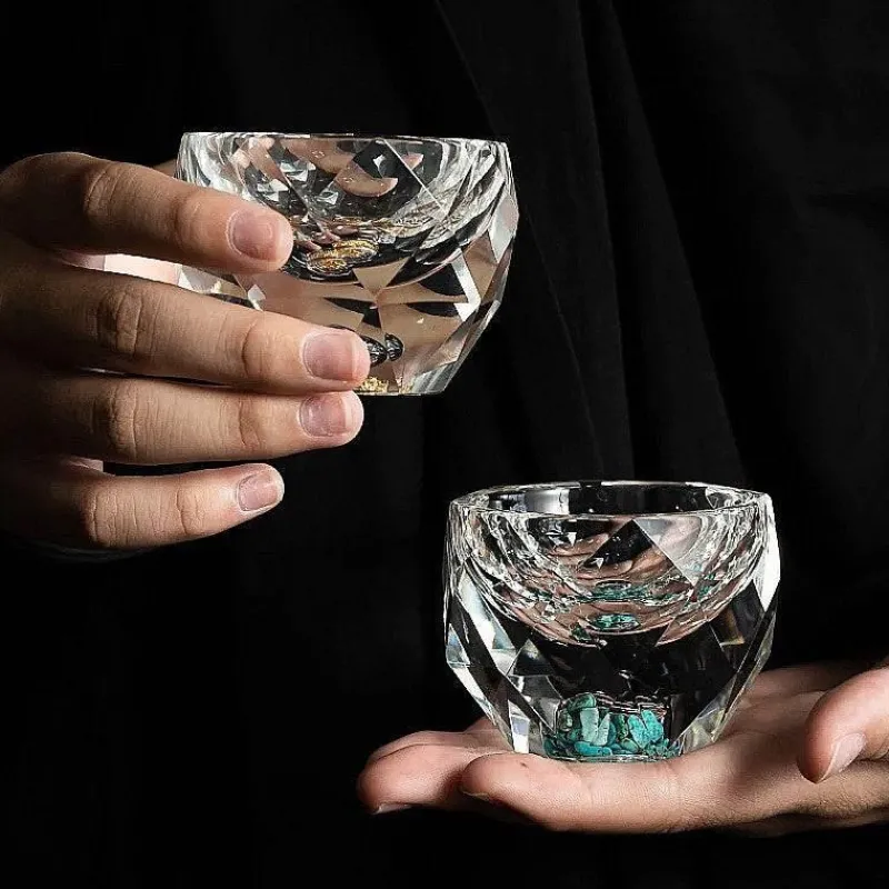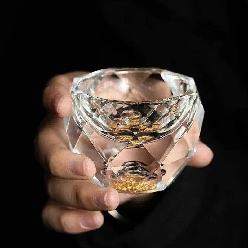 Entdecken Sie den Kinkō Crystal Tumbler, ein edles, handgefertigtes Gefäß, das modernes Design mit traditioneller Handwerkskunst verbindet. Veredelt mit echten Goldflocken, verwandelt dieser Becher jeden Schluck in ein luxuriöses Erlebnis und ist eine exquisite Wahl für den Genuss hochwertiger Spirituosen. Seine einzigartige Ästhetik und die durchdachten Details laden dazu ein, sowohl das Getränk als auch den Moment zu genießen und spiegeln ein Qualitätsbewusstsein wider, das jeden Anlass bereichert.