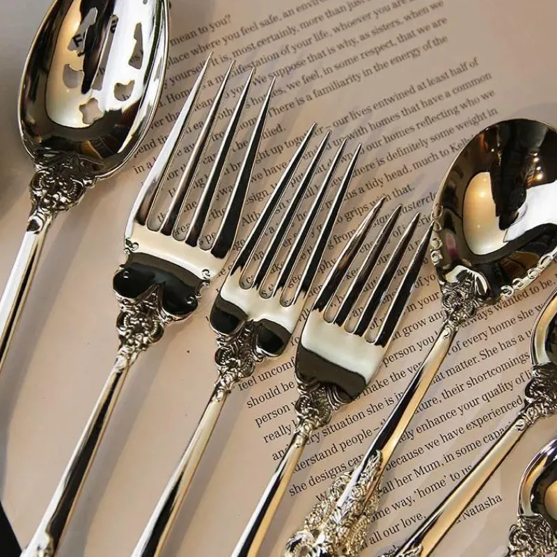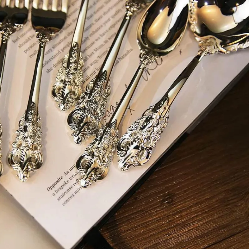 Dieses Besteckset ist nicht nur ästhetisch ansprechend, sondern auch praktisch und umweltfreundlich und somit alltagstauglich. Ob Sie in einem Restaurant eine elegante Atmosphäre schaffen oder zu Hause ein gemütliches Essen mit der Familie genießen – das barocke Silberbesteck-Set passt perfekt zu jedem Anlass.