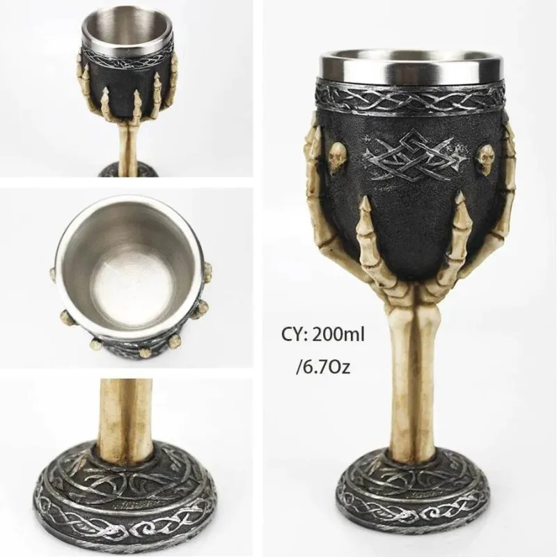 Betonen Sie Ihren Gothic-Stil mit dem Skull Claw Kelch – eine auffällige Ergänzung für Ihre nächste Party oder Zusammenkunft. Dieses Weinglas aus einer einzigartigen Mischung aus Harz und Edelstahl besticht durch sein kantiges Design, das die Gothic- und Punk-Ästhetik perfekt einfängt und mit einer Prise Humor verfeinert ist.