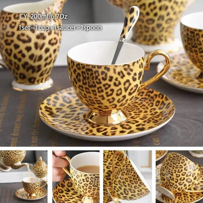 Ob für Ihre tägliche Kaffeezeremonie oder als dekoratives Highlight – dieses Kaffeetassen-Set aus Bone China vereint Funktionalität mit einladendem Charme und verleiht Ihrem Zuhause einen Hauch von Luxus. Genießen Sie Ihr Lieblingsgetränk und erfreuen Sie sich gleichzeitig an der zeitlosen Schönheit dieses elegant gefertigten Stücks.