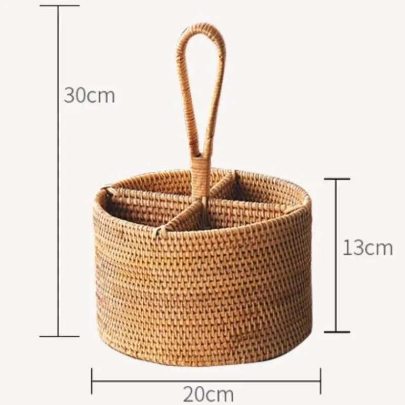 Diese vielseitige Aufbewahrungslösung eignet sich perfekt für eine Vielzahl von Gegenständen, von Haushaltsgegenständen bis hin zu Snacks, Obst und Backwaren. Mit vier Gitterfächern bietet sie ausreichend Platz, um Ihre Sachen übersichtlich zu halten und Ihre Umgebung aufgeräumt zu halten. Sorgfältig handgewebt, erfüllt dieser umweltfreundliche Organizer nicht nur Ihre Aufbewahrungsbedürfnisse, sondern wertet Ihre Räume auch optisch auf.