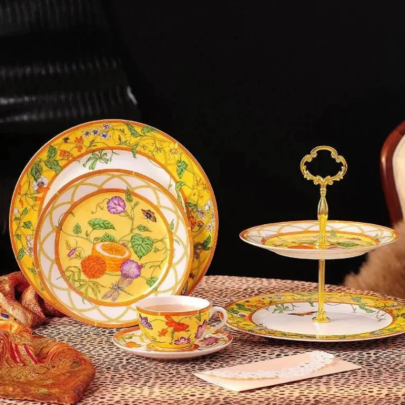 Der warme Gelbton, gepaart mit charmanten Akzenten im europäischen Stil, fängt den Charme des ländlichen Raums ein und macht ihn perfekt für jeden Anlass. Jedes Stück präsentiert ein sorgfältig handgefertigtes Schmetterlingsdesign, das durch eine Aufglasurtechnik erreicht wurde und ein skurriles, bezauberndes Flair verleiht.