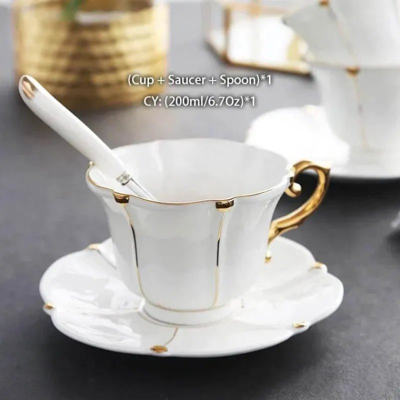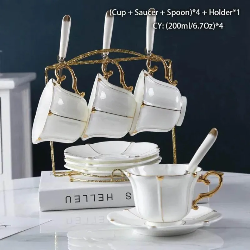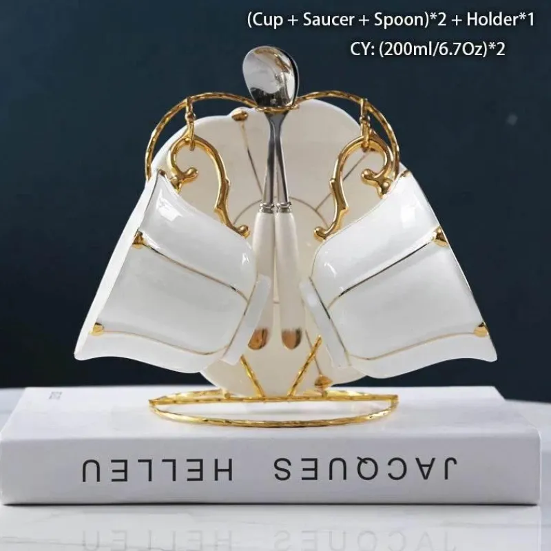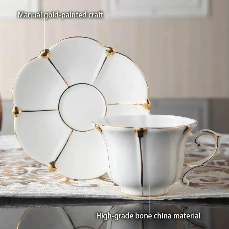 Verschönern Sie Ihre Tee- oder Kaffeemomente mit diesem Teeservice aus Bone China – entworfen für alle, die Qualität und Raffinesse schätzen. Verleihen Sie Ihrem Tisch einen Hauch von Eleganz und genießen Sie die Schönheit, die es zu jedem Anlass verleiht.
