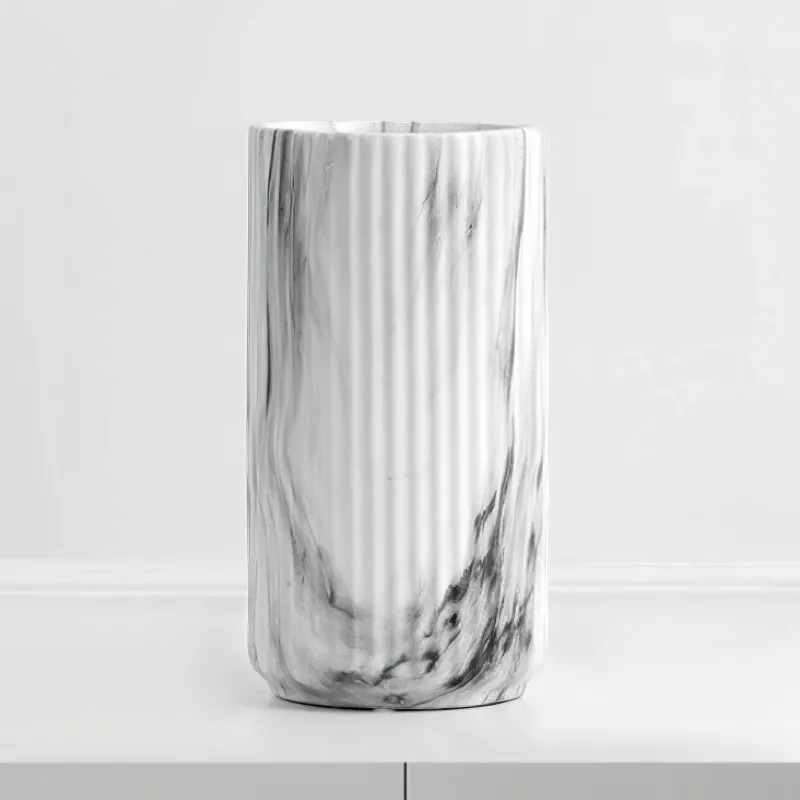 Entdecken Sie die Eleganz unserer Keramikvase in Marmoroptik, die zeitlosen Stil auf moderne Raffinesse trifft. Diese Vase imitiert die Schönheit luxuriösen Marmors und verleiht Ihrem Raum eine edle Note. Das glatte Keramikmaterial bietet nicht nur ein leichtes Tragegefühl für einfaches Platzieren, sondern sorgt auch für lange Haltbarkeit.