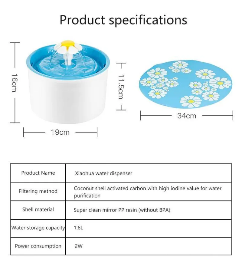 Der aus hochwertigen, BPA-freien Materialien gefertigte Brunnen verfügt über ein attraktives Blumendesign, das Haustiere anzieht und gleichzeitig Ihre Inneneinrichtung ergänzt.