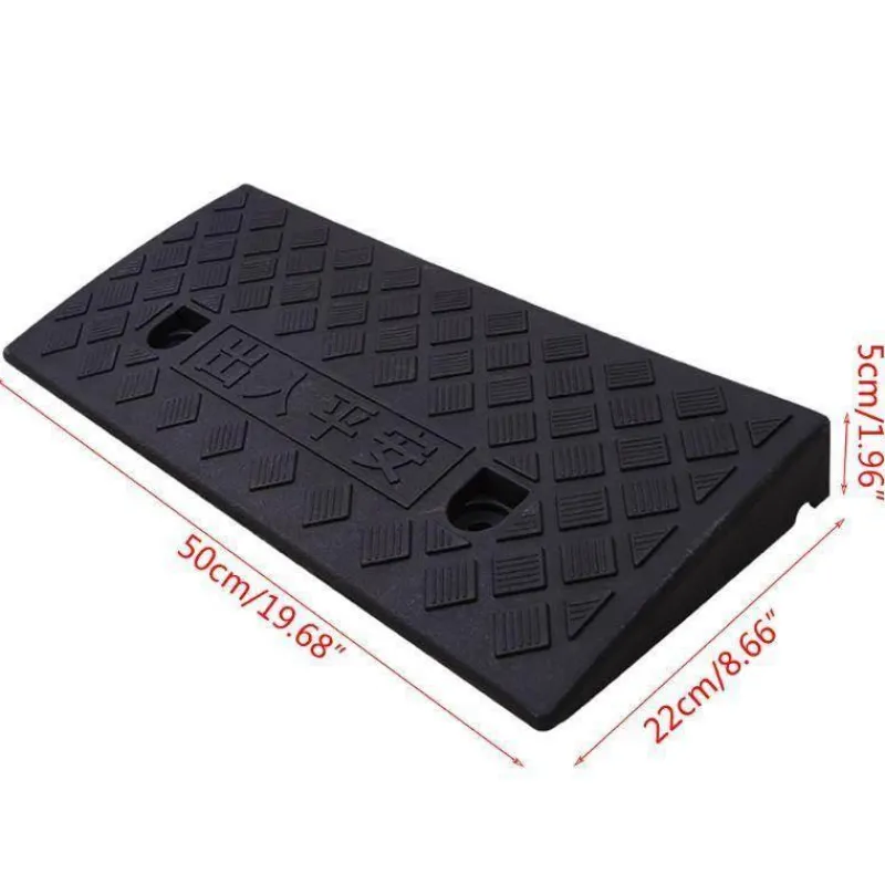 Jede Rampe ist 50 cm breit, 21,8 cm tief und 5 cm hoch. Dank ihrer robusten Konstruktion trägt sie bis zu 3,3 Tonnen (6.600 lbs). Dank dieser beeindruckenden Stärke können Fahrzeuge unebenes Gelände und Bordsteine sicher bewältigen.