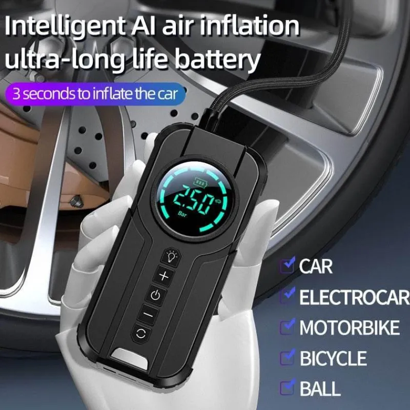Das Paket enthält einen tragbaren Turbo Jet-Luftkompressor, der Ihnen jederzeit und überall zur Seite steht. Mit diesem unverzichtbaren Werkzeug können Sie Ihre Reifen bequem aufpumpen und Ihre Abenteuer reibungslos gestalten. Entdecken Sie praktische Lösungen für Ihr Zuhause bei Decor .