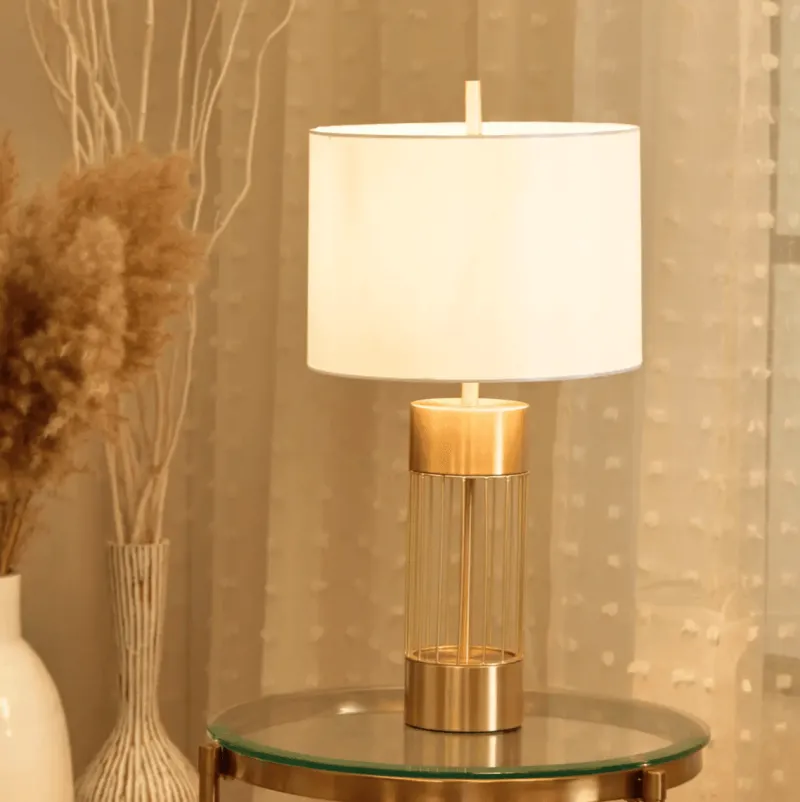 Discover the allure of modern design with this stunning table lamp that embodies both style and functionality. Inspired by the elegance and strength of a secure vault, the lamp features a sealed cylindrical base paired with luminous gold-finished metal rods that elegantly encase the inner light source. This thoughtful design not only enhances security but also adds a touch of sophistication to any room.