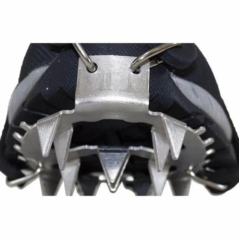 Die Steigeisenzähne sind als integraler Bestandteil der Abdeckung konzipiert und gewährleisten festen Kontakt mit Ihren Schuhsohlen. Dieses Design verhindert, dass die Eiszähne beim Gehen wegrollen, und verbessert so die allgemeine Rutschfestigkeit während des Gebrauchs.