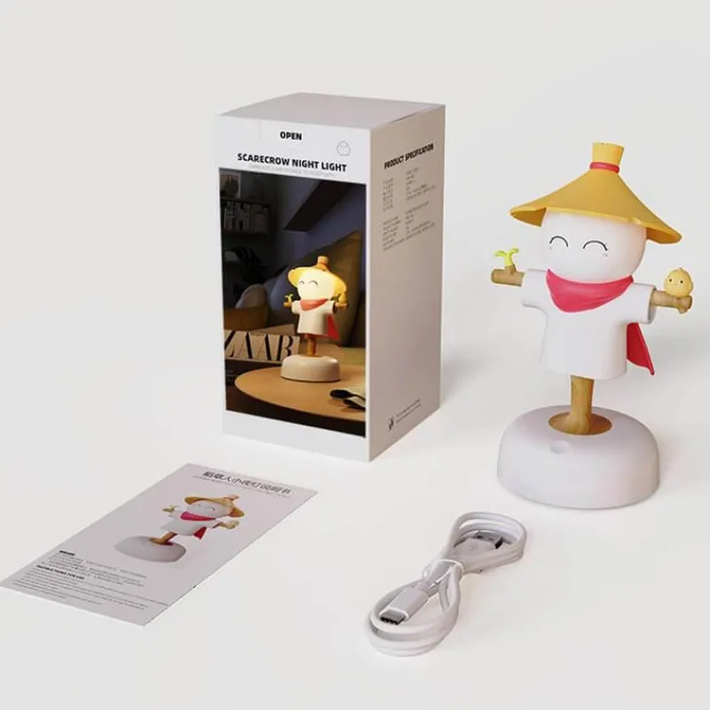 Erhellen Sie Ihren Raum mit dem bezaubernden Vogelscheuchen-Nachtlicht – eine ideale Ergänzung für eine gemütliche Atmosphäre zu Halloween und im Herbst. Diese bezaubernde Nachttischlampe dient gleichzeitig als charmantes saisonales Dekostück und ist ein schönes Geschenk für Kindergeburtstage.