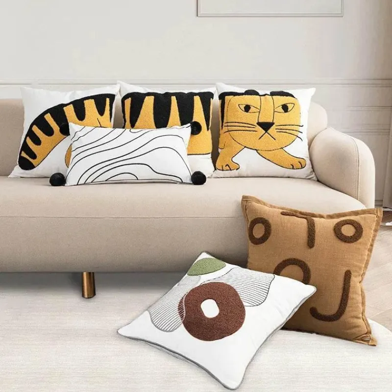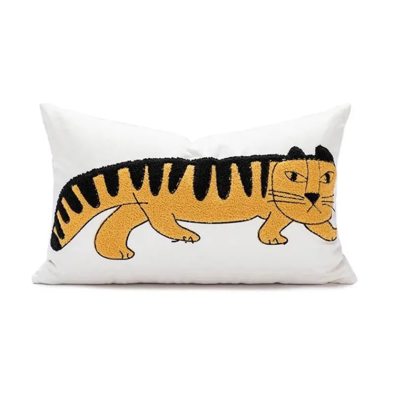 Verschönern Sie Ihre Wohnkultur mit dem bestickten Baumwollkissenbezug mit Cartoon-Tiger-Motiv – eine wunderbare Ergänzung für jedes Schlafzimmer oder Wohnzimmer. Dieser Kissenbezug aus 100 % Baumwolle präsentiert ein bezauberndes Tiermotiv, das Ihrer Einrichtung eine skurrile Note verleiht.