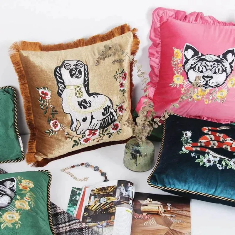Verwandeln Sie Ihren Wohnraum mit unseren Kissenbezügen mit Katzenstickerei aus Samt, verziert mit eleganten Quasten. Diese Kissenbezüge aus hochwertigem Samt vereinen Stil und Charme und werten jeden Raum auf.