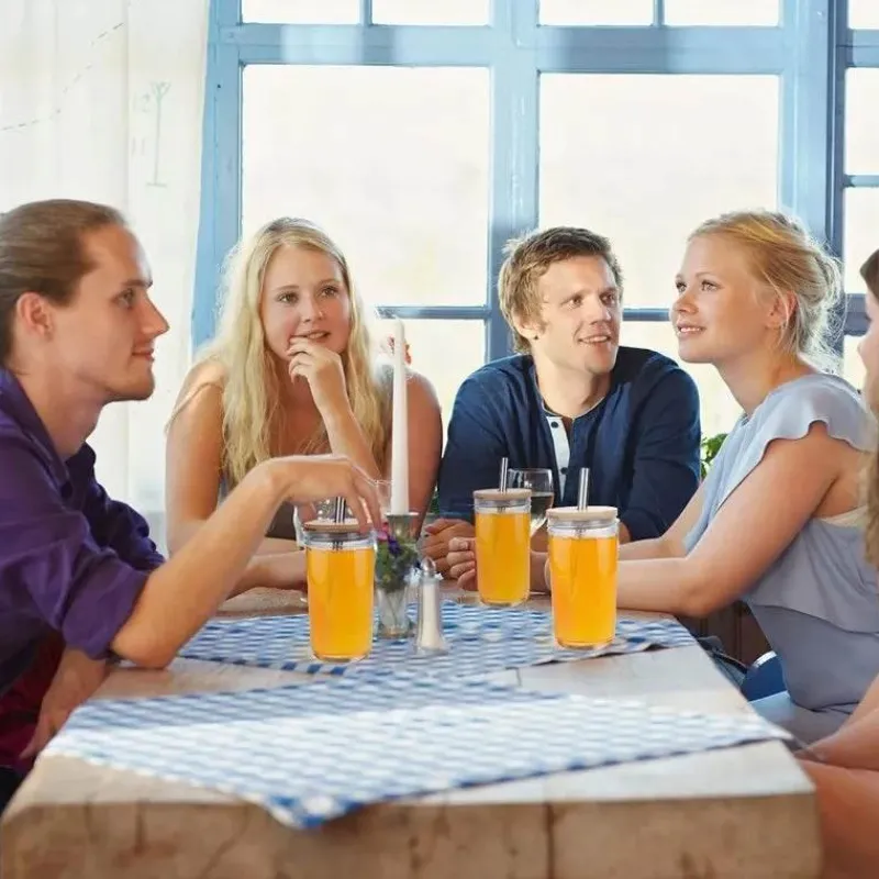 Der Bambusdeckel verleiht nicht nur einen Hauch von Eleganz, sondern sorgt auch dafür, dass Ihre Getränke frisch bleiben. In Kombination mit dem robusten Edelstahl-Strohhalm verbindet dieser Glasbecher mühelos Funktionalität mit Stil und ist somit die ideale Wahl für zwanglose Treffen und ruhige Momente zu Hause.