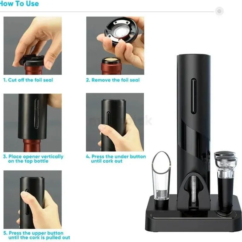 Dieser Korkenzieher ist mehr als nur ein herkömmlicher Weinöffner. Er verfügt über eine automatische Korkenentfernung und ein intuitives Design, das ihn für jedermann benutzerfreundlich macht. Ob Sie eine festliche Feier veranstalten oder nach einem langen Tag entspannen – dieser elektrische Korkenzieher macht das Öffnen von Wein zu einem einfachen und angenehmen Vorgang.