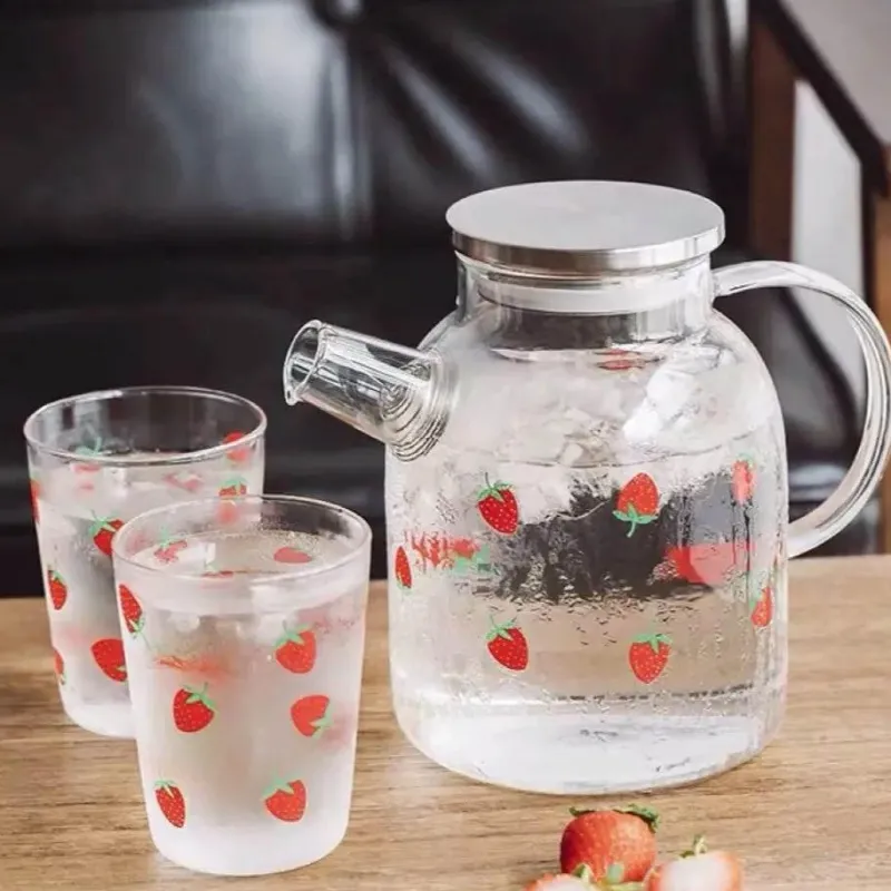 Wir präsentieren den Erdbeer-Glasbecher mit Strohhalm und Deckel – Ihr perfekter Klarglasbecher zum Genießen von Milch und Saft. Dieses elegante Trinkgefäß aus hochwertigem Borosilikatglas bietet Langlebigkeit und eine atemberaubende kristallklare Oberfläche, die Ihre Getränke perfekt präsentiert.
