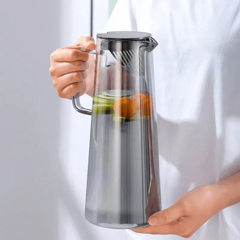 Wir präsentieren den Gray Glass Pitcher, einen großen Krug zum stilvollen Servieren von Wasser, Saft und anderen Getränken. Diese elegante und zugleich funktionale Ergänzung für Ihre Küche oder Ihren Essbereich ist aus hochwertigem Borosilikatglas gefertigt und bietet sowohl Langlebigkeit als auch eine anspruchsvolle Ästhetik.