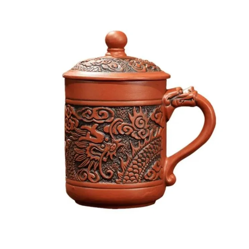 Entdecken Sie den Charme traditioneller chinesischer Kunst mit dem Dragon Phoenix Thermo-Reisebecher. Dieser sorgfältig aus hochwertigem violettem Ton gefertigte isolierte Kaffeebecher bietet ein außergewöhnliches Trinkerlebnis und lässt Sie jeden Schluck Ihres Getränks genießen. Der ergonomische Griff ist komfortabel und vereint Eleganz und Funktionalität für Ihren Alltag.