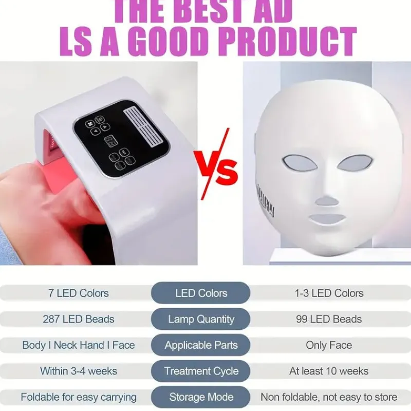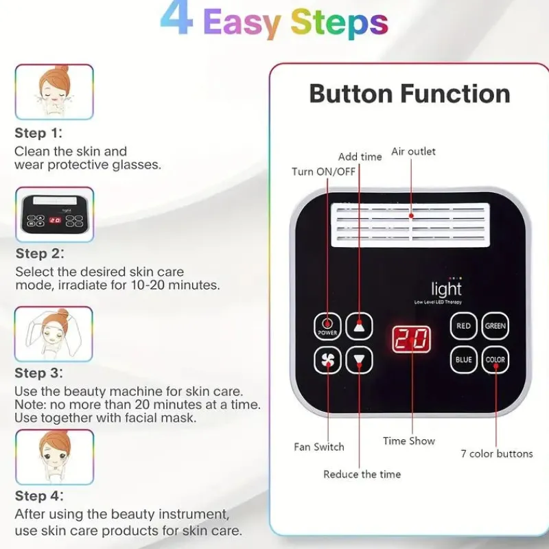 Revitalisieren Sie Ihre Haut mit diesem professionellen LED-Lichttherapiegerät, das mit der Kraft von 7 therapeutischen Lichtwellenlängen verschiedene Hautpflegeprobleme bekämpft. Ideal für Spa-Sitzungen zu Hause oder den professionellen Einsatz.