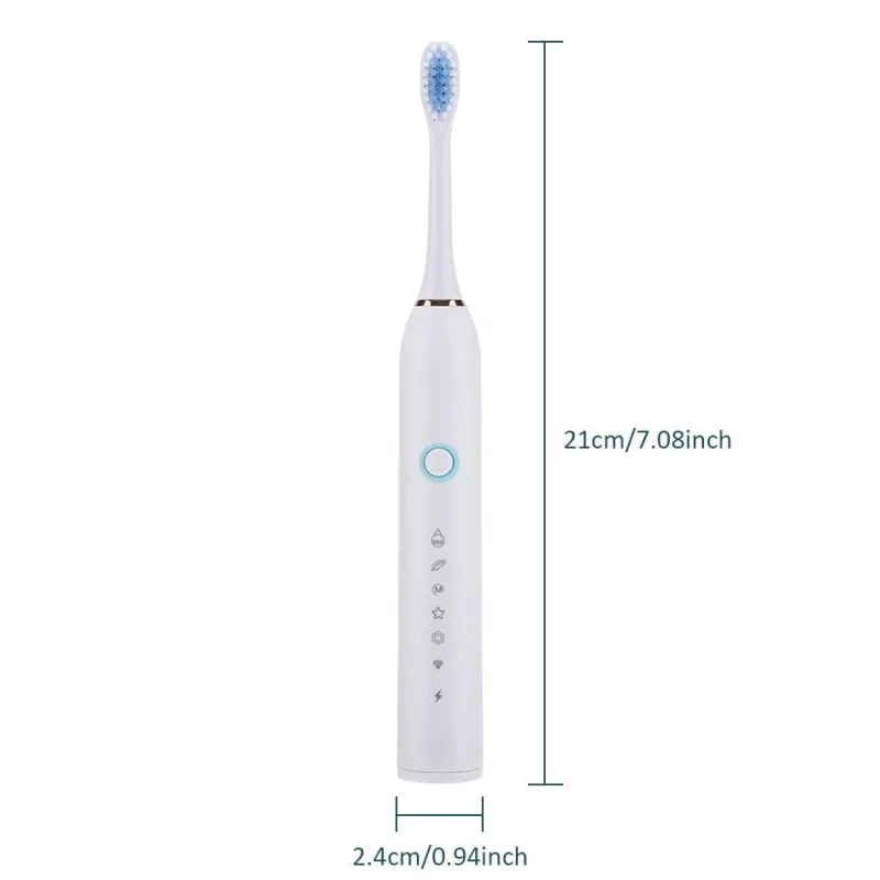 Verbessern Sie Ihre Mundhygiene mit dieser fortschrittlichen elektrischen Schallzahnbürste für eine gründliche und effektive Reinigung. Mit sechs anpassbaren Reinigungsmodi, einem hochintensiven Vibrationsmotor und intelligenten Putzfunktionen sorgt diese Zahnbürste für ein gesünderes Lächeln und macht Ihre tägliche Routine mühelos.