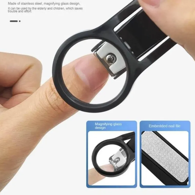 Entdecken Sie präzise Nagelpflege mit dem Clear Cut Trimmer, einem durchdachten Nagelknipser für müheloses Trimmen. Dieses innovative Werkzeug verfügt über eine integrierte Lupe für bessere Sichtbarkeit, sodass Sie beim Schneiden selbst kleinste Details Ihrer Nägel sicher erkennen können.
