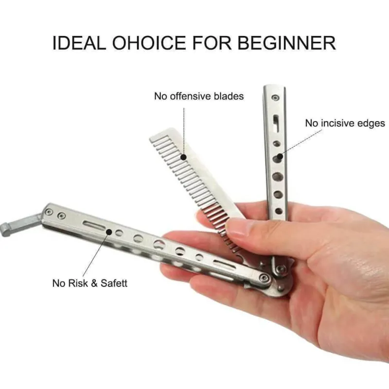 Entdecken Sie die praktische und funktionale Faltbürste aus Edelstahl – ein unverzichtbares Reise-Haarpflegetool für Anfänger und Fortgeschrittene. Dieser innovative Schmetterlingskamm hilft Ihnen, Ihre Haarstyling-Fähigkeiten sicher zu üben und ohne Schnitt- oder Prellungsgefahr zu simulieren. Ohne scharfe Kanten oder spitze Klingen ist er benutzerfreundlich.