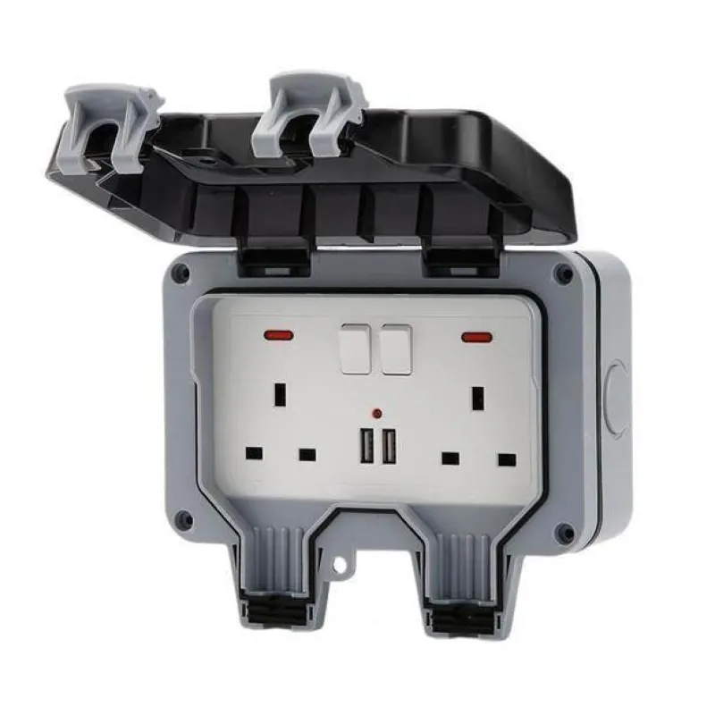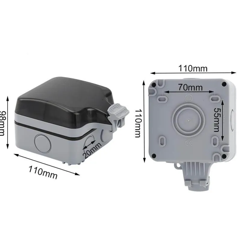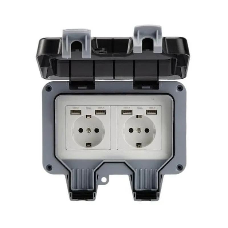 Sicherheit steht bei dieser wetterfesten Steckdose im Vordergrund. Sie verfügt über zwei Steckdosen und eine verschließbare Abdeckung, um versehentliches Öffnen zu verhindern. Zu den Spezifikationen gehören eine Nennspannung von 220 V–250 V, ein Nennstrom von 16 A, ein Kontaktwiderstand von 100 MΩ und ein Isolationswiderstand von 50 MΩ, die alle zu ihrer zuverlässigen Leistung beitragen.