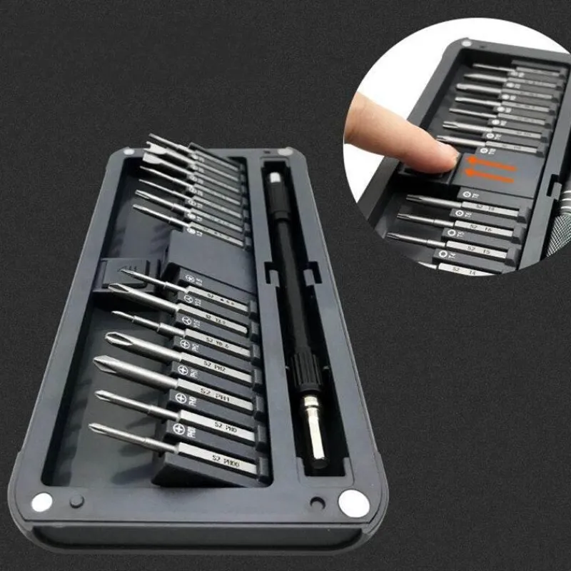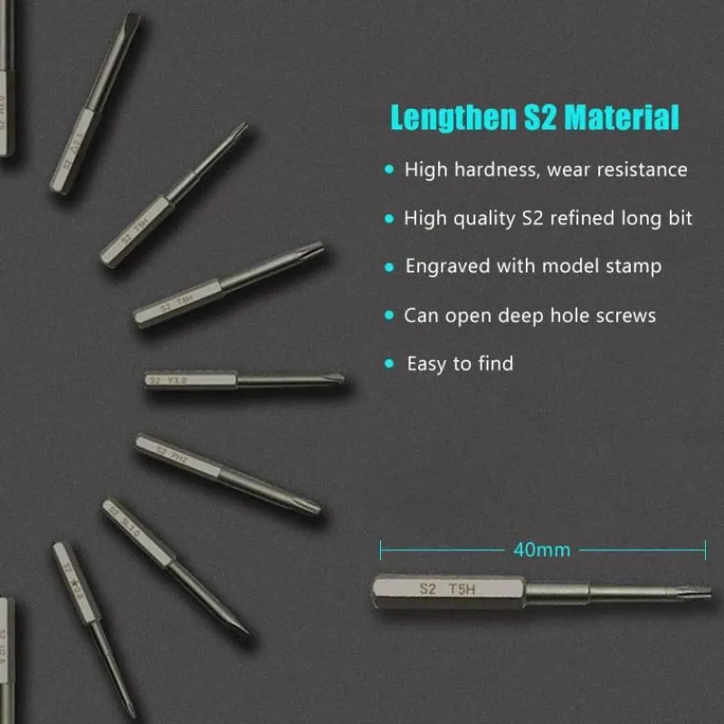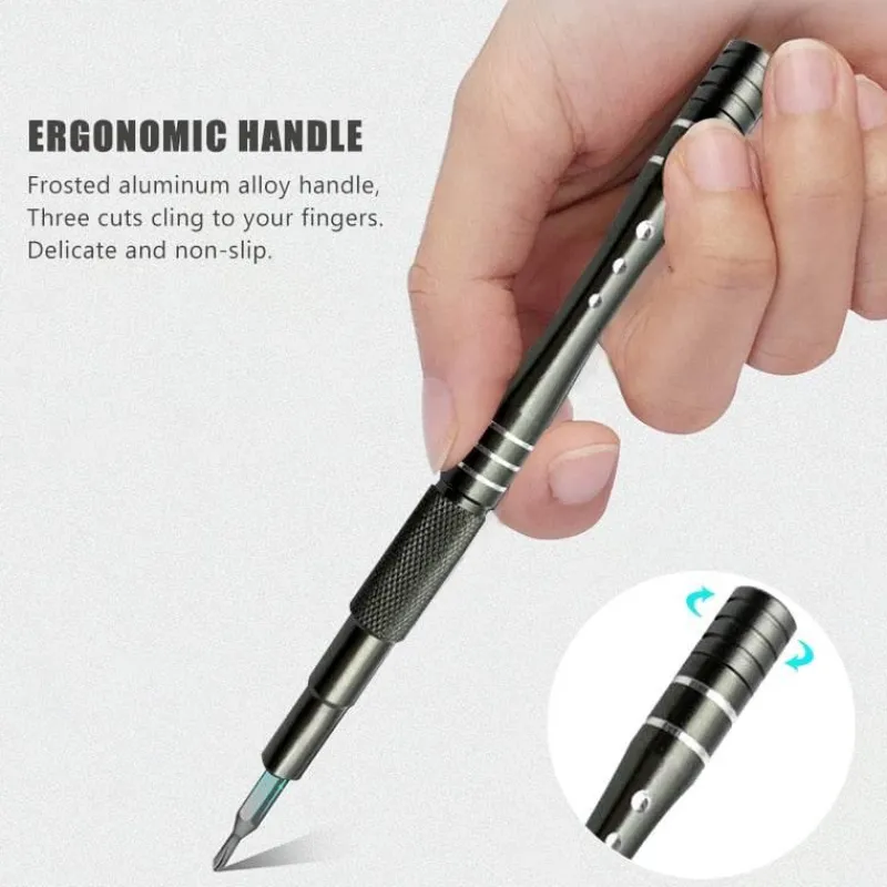 Wir präsentieren ein vielseitiges magnetisches Schraubendreher-Set für Langlebigkeit und Benutzerfreundlichkeit. Der Griff aus rostfreier Aluminiumlegierung sorgt für Langlebigkeit und sicheren Halt. Die mitgelieferte Aufbewahrungsbox hält Ihre Werkzeuge übersichtlich und griffbereit. Jeder Bitkopf ist magnetisch und ermöglicht so müheloses Aufnehmen von Schrauben. Ideal für Arbeiten an Uhren, Kameras, Computern, Mobiltelefonen und anderen Geräten.