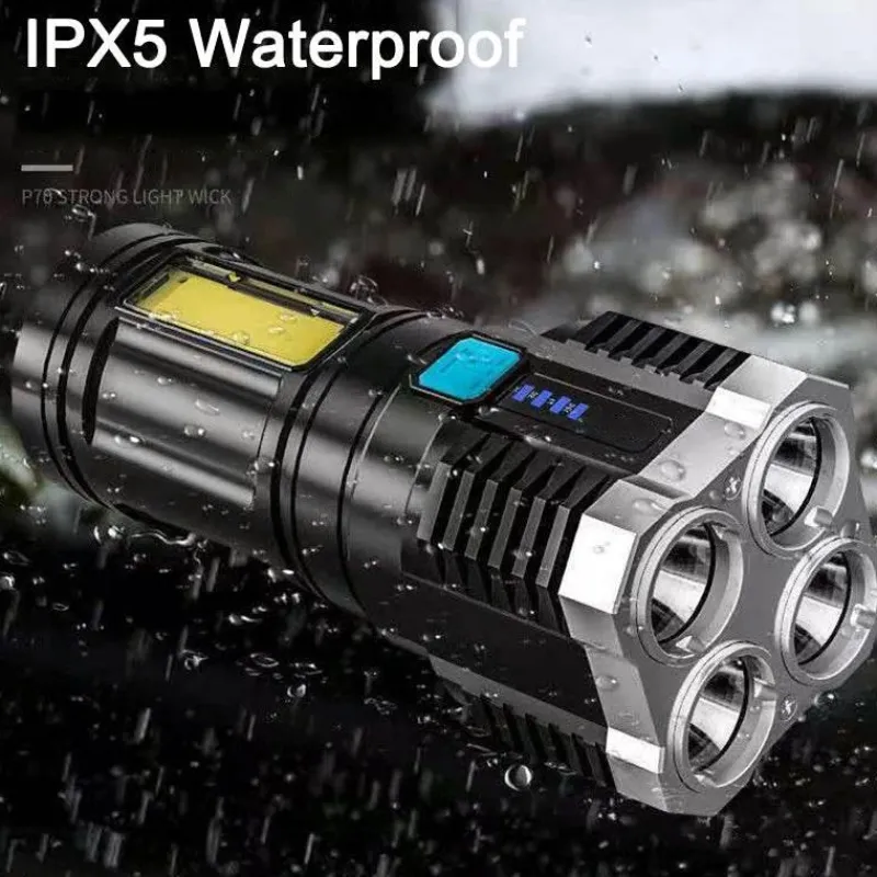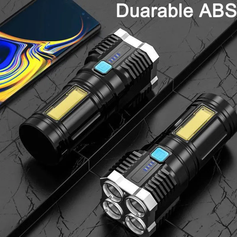 Diese Taschenlampe bietet vier Leuchtmodi – starkes Licht, schwaches Licht, Stroboskop und COB-Seitenlicht – und passt sich so problemlos an verschiedene Situationen an, egal ob Sie einen dunklen Weg beschreiten oder um Hilfe bitten. Dank des eingebauten 1200-mAh-Lithium-Akkus sorgt sie für eine lange Leuchtdauer und ist somit ein zuverlässiger Begleiter auf jeder Expedition.
