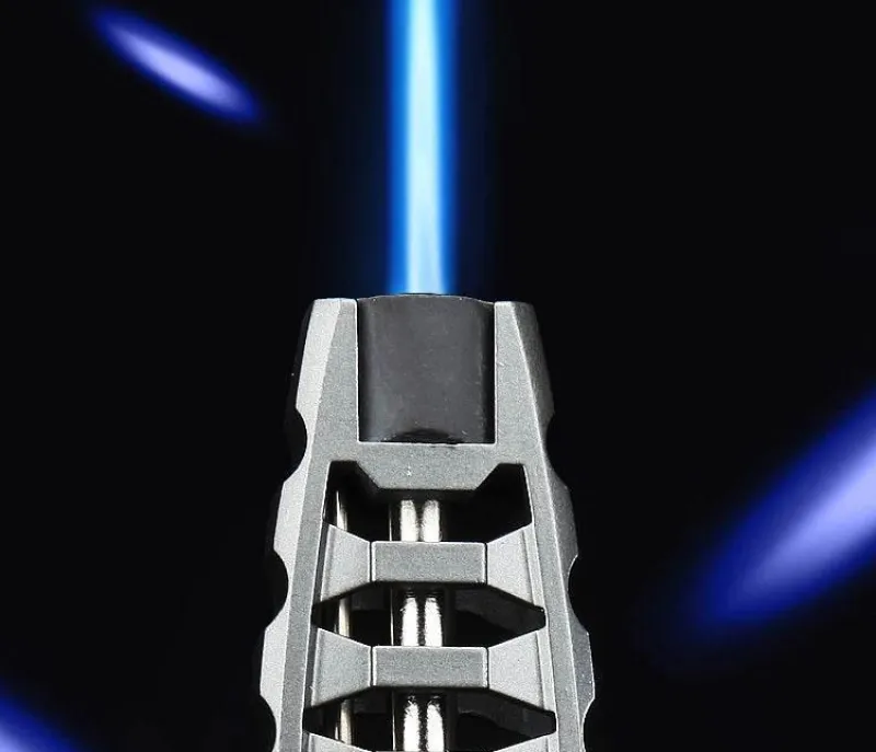 Erleben Sie bei Ihren Outdoor-Abenteuern zuverlässige Zündung mit diesem winddichten Jetflammenfeuerzeug. Dieses Feuerzeug wurde für den Einsatz bei schwierigen Wetterbedingungen, einschließlich Regen, entwickelt und verfügt über eine robuste Jetflamme, die ein gleichmäßiges, starkes Licht liefert, das von den Elementen unbeeinflusst bleibt.