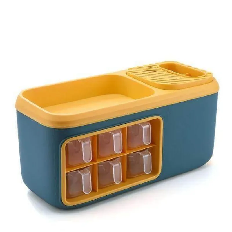 Dieser multifunktionale Küchen-Organizer ist eine hervorragende Lösung, um Ihre Gewürze übersichtlich und leicht zugänglich aufzubewahren. Mit sechs geräumigen Fächern bietet er Platz für Zucker, Salz und verschiedene Gewürze und sorgt so für Ordnung in der Küche. Die transparente, abnehmbare Gewürzbox ermöglicht Ihnen einen schnellen Zugriff auf Ihre Lieblingsgewürze und macht das Kochen effizienter und angenehmer.