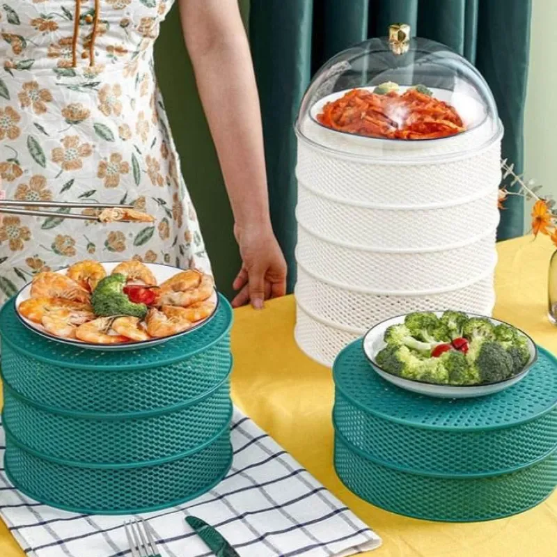 Entdecken Sie eine praktische Lösung zum Schutz Ihrer Mahlzeiten mit der stapelbaren, mehrschichtigen Lebensmittelabdeckung. Dieser vielseitige Aufbewahrungsschutz eignet sich ideal für zu Hause, im Büro oder auf Reisen. Hergestellt aus lebensmittelechtem Kunststoff und mit langlebigen Silikonkomponenten hält diese innovative Abdeckung Ihr Geschirr frisch und sicher und verhindert Verschütten und Flecken.