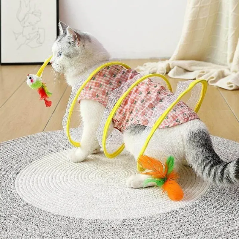 Das elastische und platzsparende, zusammenklappbare Design sorgt für stundenlange Unterhaltung für Ihre geliebte Katze, während die einzigartige Spiralstruktur die Neugier weckt und zum Spielen anregt. Dieser Tunnel bietet eine sichere Umgebung, in der Ihre Katze alles erkunden und genießen kann.