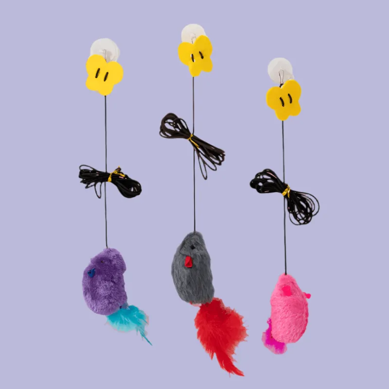 Unser Set enthält drei einzigartige Spielzeuge, sodass Ihre Katze für jede Spielrunde ihr Lieblingsspielzeug auswählen kann. Für zusätzliche Sicherheit ist die Seillänge verstellbar, sodass das Spielzeug in der passenden Höhe für Ihren Raum platziert werden kann.