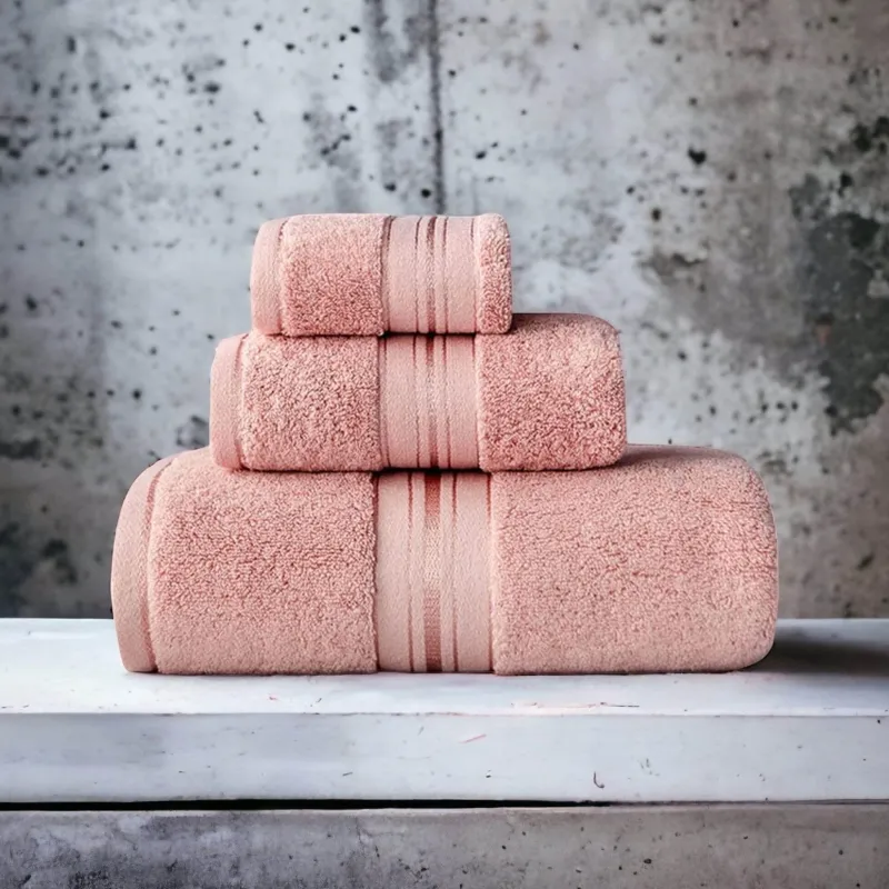 Each towel features a modern ribbed texture complemented by a sleek border design, bringing a contemporary flair to your bathroom decor. Available in a range of neutral and seasonal colors, this collection easily harmonizes with various settings. Elevate your bathing experience with the plush softness and quality craftsmanship that these towels deliver.
