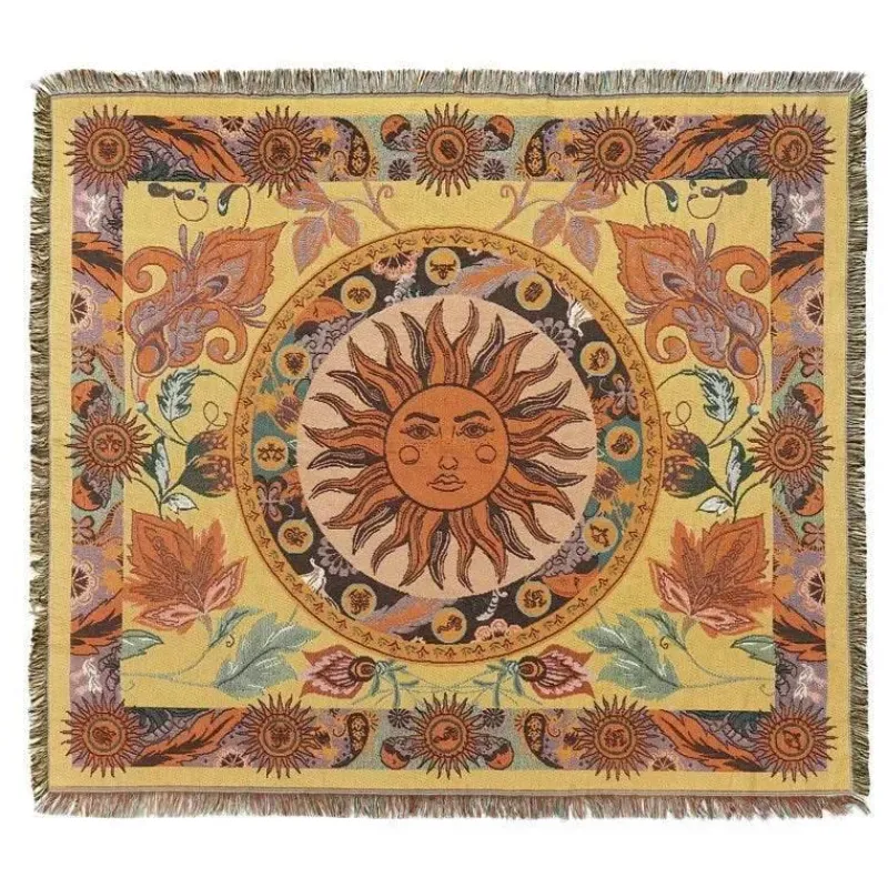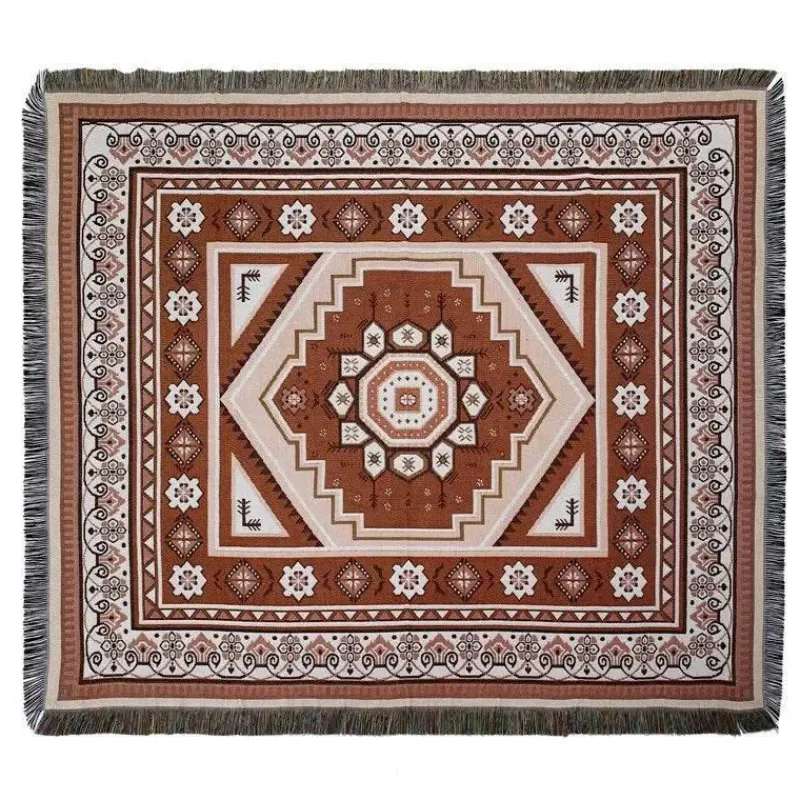 Wir präsentieren die Bohemian Outdoor Decke, einen luxuriösen Gobelin-Teppich, perfekt für Outdoor-Fans, die Stil und Komfort schätzen. Hergestellt aus einer hochwertigen Polyester-Baumwoll-Mischung, wertet diese Decke Ihre Campingausflüge, Picknicks oder sogar Ihre Wohnkultur mit ihrem raffinierten Design auf.