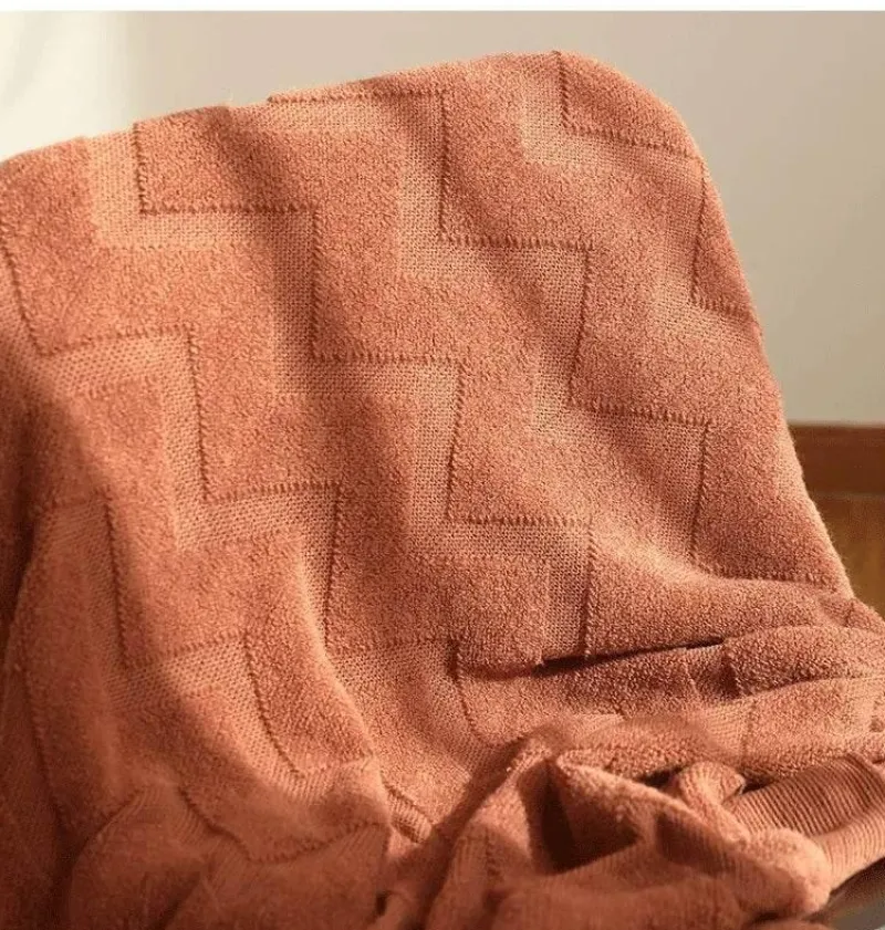 Mit ihrem modernen geometrischen Muster verleiht die Decke jedem Raum eine elegante Note und verleiht ihm ein zeitgenössisches Flair. Dank ihres leichten Designs ist sie vielseitig einsetzbar – ideal zum Kuscheln auf dem Sofa, als Reiseschal oder für unterwegs.